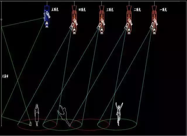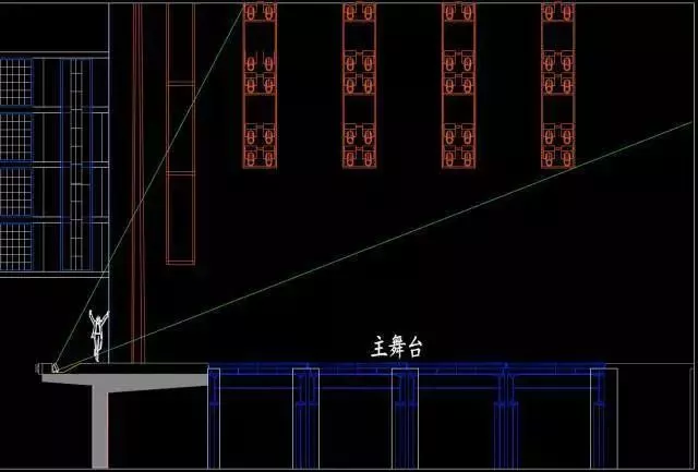 演員是演出的主體,演員在主要表演區(qū)活動時(shí),臉部均應(yīng)受到良好的照明效果。凡涉及表演區(qū)照明的燈位,要求離舞臺面1.7m水平標(biāo)高(一般人眼的高度)為照明基準(zhǔn),稱作“有效照明范圍”。