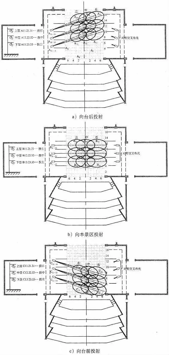 燈具的排列及投射方法與耳光基本相同